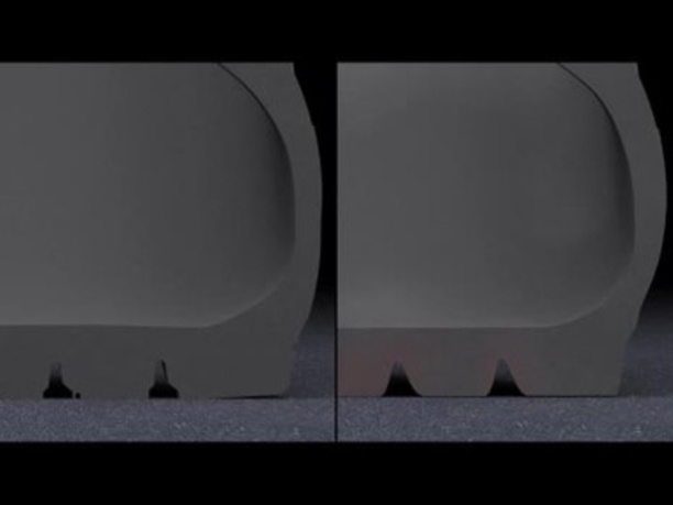 - Sırt desenindeki daraltılmış kanallar, desen hacminin ve beraberinde aşınma direncinin artmasına yol açar, böylece yüksek kilometre performansı elde edilir.